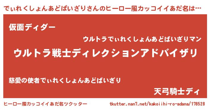 | 意味不明あだ名 | 『自称でぃれくしょんあどばいざり』 |