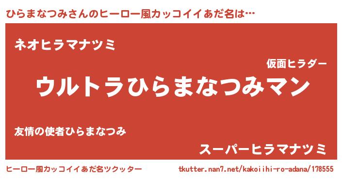 | 男性向けラノベタイトル風あだ名 | 『ひらまなつみに滅ぼされるだけの簡単なお仕事です』 |