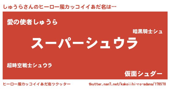 | 意味不明あだ名 | 『ペロリンしゅうら』『自称しゅうら』 |