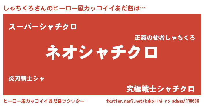 | ヘコむあだ名 | 『しゃちくろ(震え声)』『しゃにゅー』 |