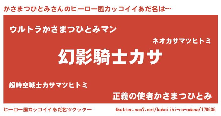 | 男性向けラノベタイトル風あだ名 | 『かさまつひとみの嫁は女の子じゃないと思った?』 |