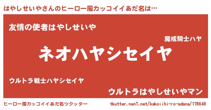 | 胡散臭い通販商品みたいなあだ名 | 『前代未聞の健康食品…その名も「はやしせいや」』 |
