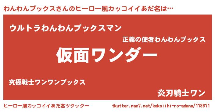 | 男性向けラノベタイトル風あだ名 | 『緋弾のワンワンプックス』 |