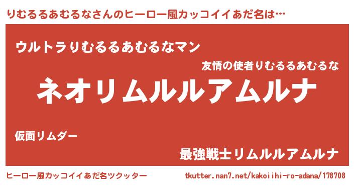 | 男性向けラノベタイトル風あだ名 | 『はたらくりむるるあむるなさま!』 |