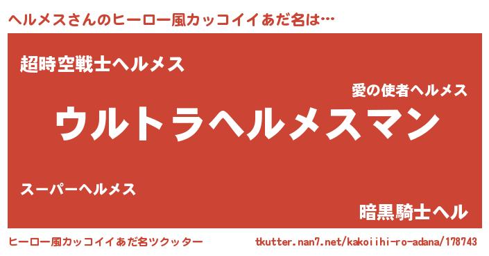 | 意味不明あだ名 | 『ヘルメスフォーエバー』『自称ヘルメス』 |