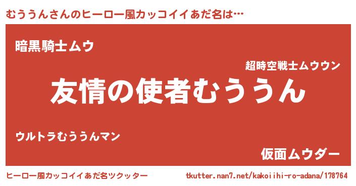 | 男性向けラノベタイトル風あだ名 | 『おまえをオタクにしてやるから、俺をむううんにしてくれ! 』 |