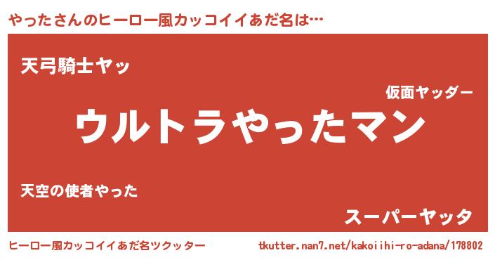 | 男性向けラノベタイトル風あだ名 | 『やったに滅ぼされるだけの簡単なお仕事です』 |