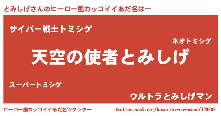 | 女子向けラノベタイトル風あだ名 | 『死神とみしげの再婚』『闇のとみしげ』 |