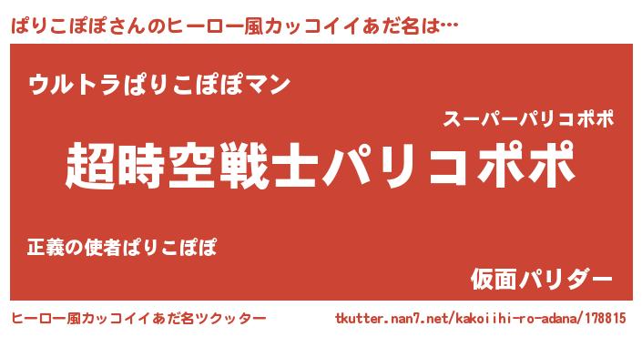 | 肩書あだ名 | 『ぱりこぽぽ少将』『ぱりこぽぽ総統』 |