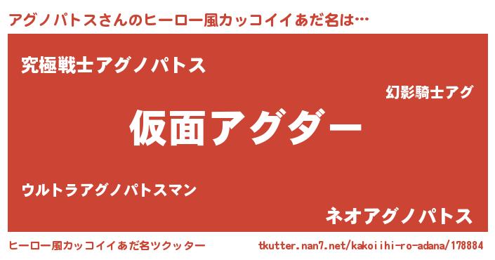 | 意味不明あだ名 | 『住所不定無職アグノパトス(5歳)』 |
