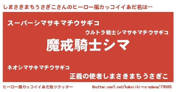 | 欧米人風あだ名 | 『ウサインしまさきまちうさぎこ』 |
