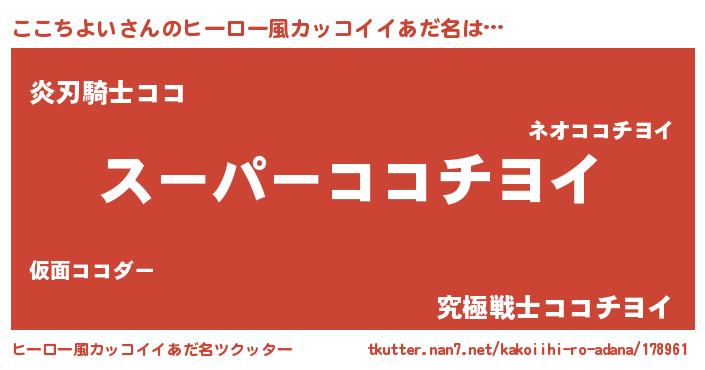 | ポケモン風あだ名 | 『ココチュウ』『ヒココチヨイ』 |