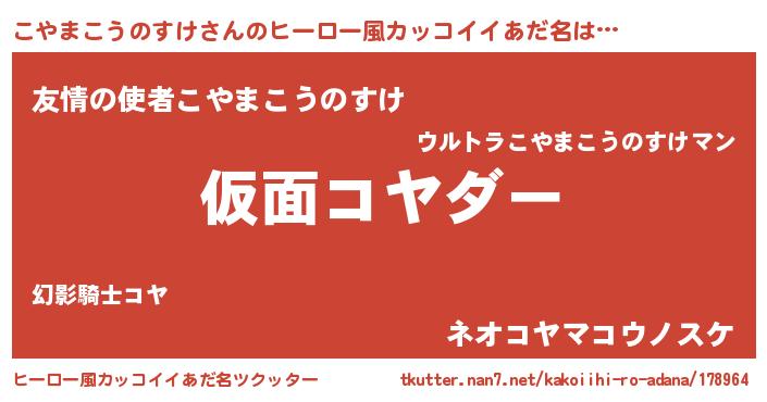 | 意味不明あだ名 | 『住所不定無職こやまこうのすけ(68歳)』 |