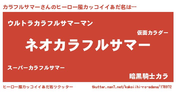 | 胡散臭い通販商品みたいなあだ名 | 『来世でも幸せになれる健康食品…その名も「カラフルサマー」』 |