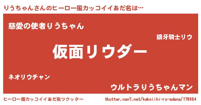 | 男性向けラノベタイトル風あだ名 | 『リウチャンスレイヤー』 |