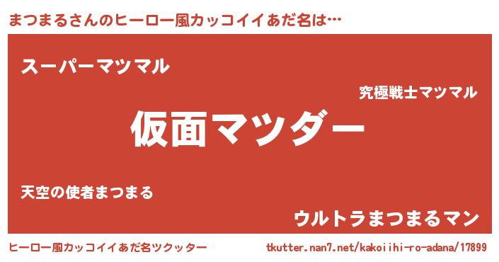 | 男性向けラノベタイトル風あだ名 | 『この素晴らしい世界にまつまるを!』 |
