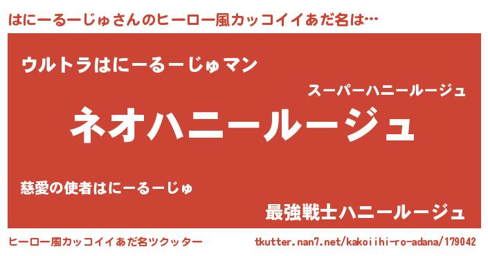 | 伝説のあだ名 | 『古文書に記された勇者はにーるーじゅ』 |