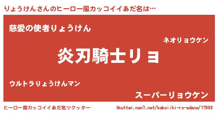 | 意味不明あだ名 | 『とにかく怪しいりょうけん』 |