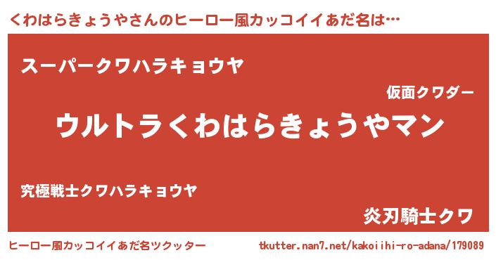 | 意味不明あだ名 | 『くわはらきょうやフォーエバー』 |