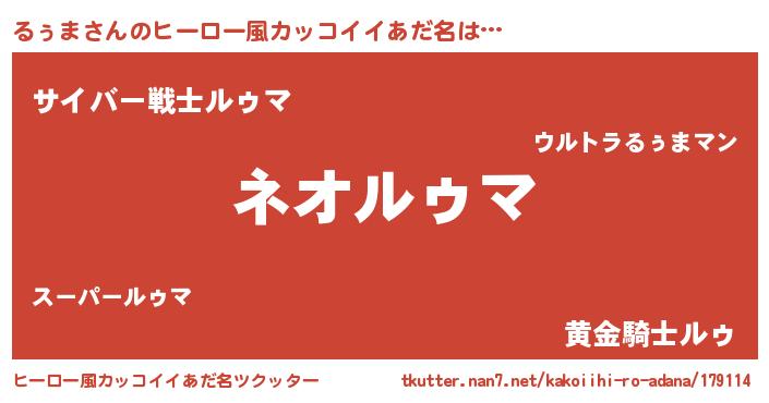 | ヘコむあだ名 | 『るぅま(苦笑)』『るぅ太郎』 |