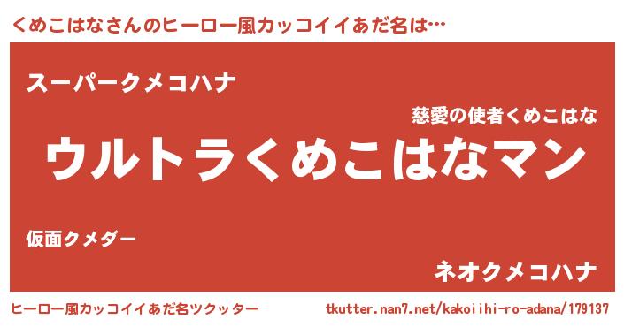 | 意味不明あだ名 | 『くめこはなフォーエバー』 |