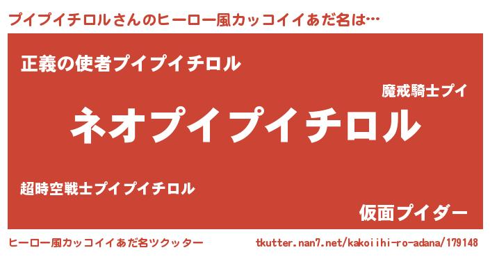 | 男性向けラノベタイトル風あだ名 | 『プイプイチロルという概念が存在しない退屈な世界 』 |