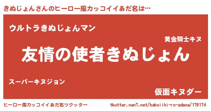 | 男性向けラノベタイトル風あだ名 | 『キヌジョンスレイヤー』 |