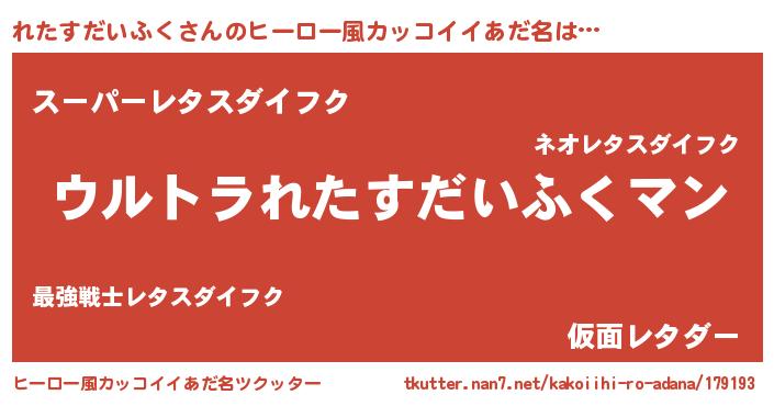 | 男性向けラノベタイトル風あだ名 | 『れたすだいふくに滅ぼされるだけの簡単なお仕事です』 |