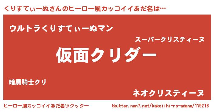 | 意味不明あだ名 | 『住所不定無職くりすてぃーぬ(4歳)』 |