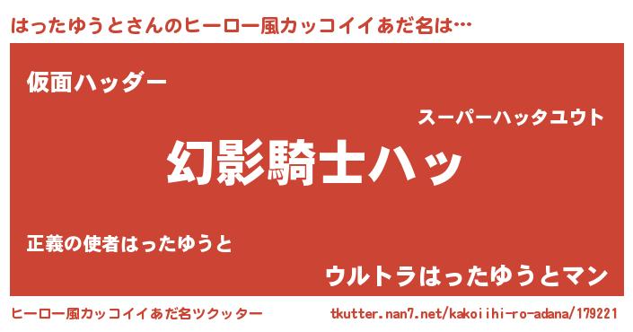 | ポケモン風あだ名 | 『ハッキング』『ヒハッタユウト』 |