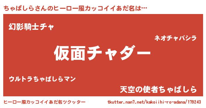 | 意味不明あだ名 | 『住所不定無職ちゃばしら(40歳)』 |