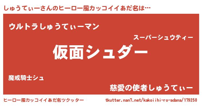 | 男性向けラノベタイトル風あだ名 | 『シュウティースレイヤー』 |