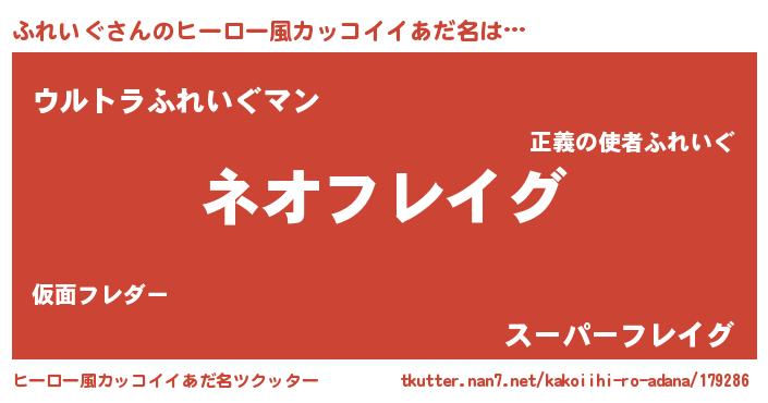 | 意味不明あだ名 | 『永久保存ふれいぐ』『ペロリンふれいぐ』 |