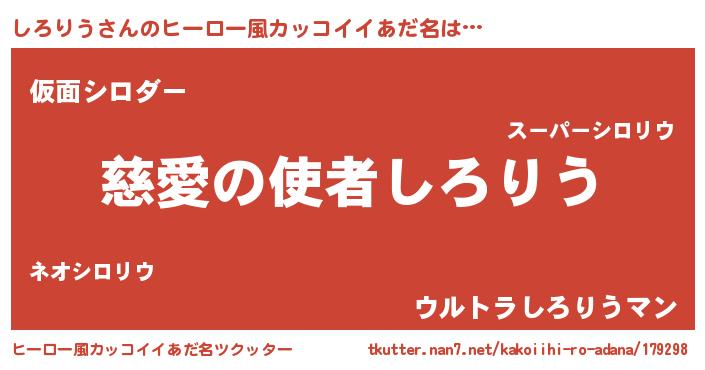 | 男性向けラノベタイトル風あだ名 | 『しろりうに滅ぼされるだけの簡単なお仕事です』 |