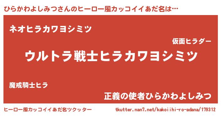 | ヘコむあだ名 | 『ひらかわよしみつ(笑)』『ひら太郎』 |