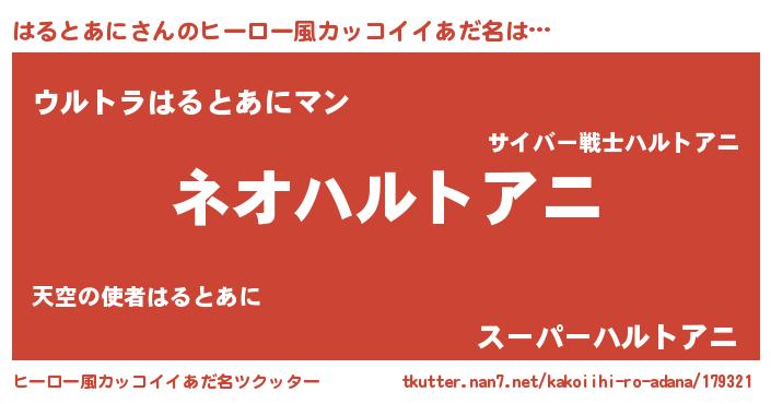 | 胡散臭い通販商品みたいなあだ名 | 『前代未聞の健康食品…その名も「はるとあに」』 |