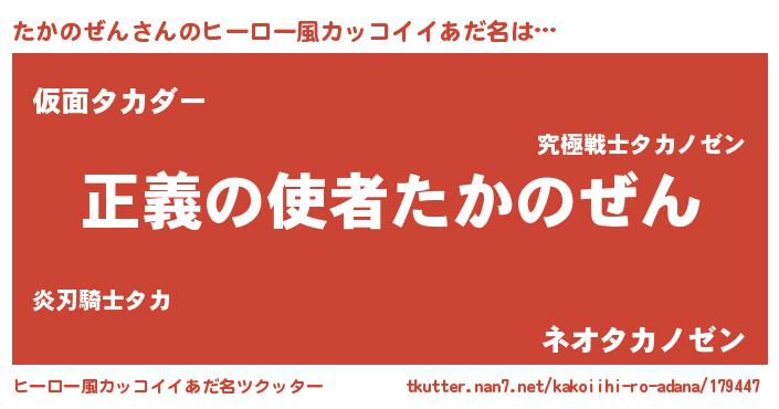 | 男性向けラノベタイトル風あだ名 | 『おまえをオタクにしてやるから、俺をたかのぜんにしてくれ! 』 |