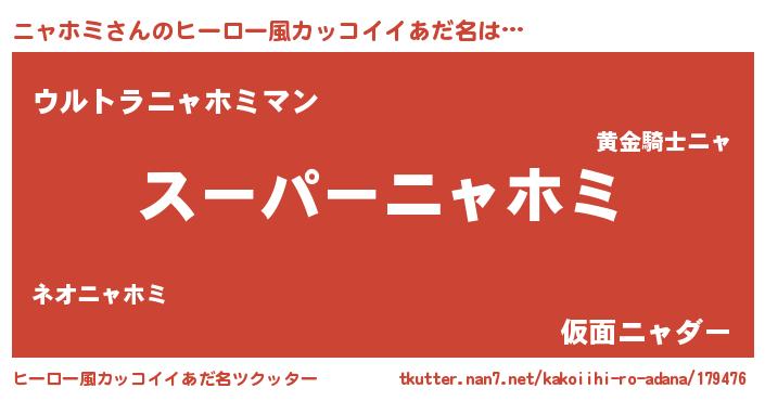 | 男性向けラノベタイトル風あだ名 | 『ニャホミの憂鬱』『魔弾の王とニャホミ』 |