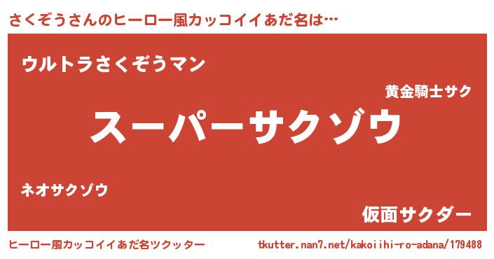 | 男性向けラノベタイトル風あだ名 | 『サクゾウアートオンライン』 |