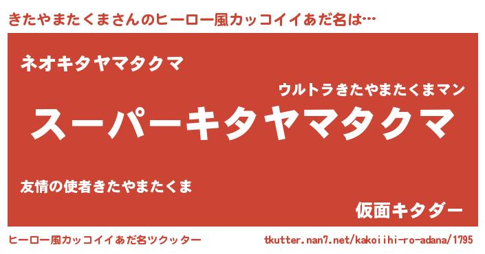| 胡散臭い通販商品みたいなあだ名 | 『億万長者になれる霊験あらたかなお札…その名も「きたやまたくま」』 |