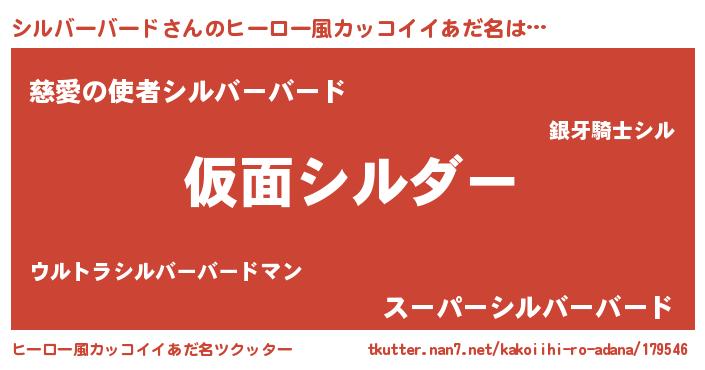 | 男性向けラノベタイトル風あだ名 | 『この素晴らしい世界にシルバーバードを!』 |