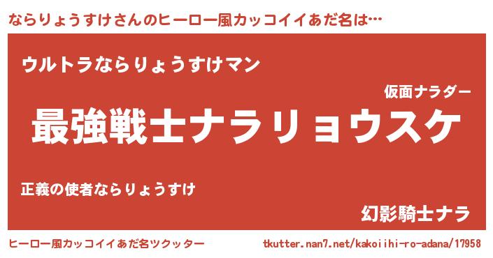 | 意味不明あだ名 | 『自称ならりょうすけ』 |