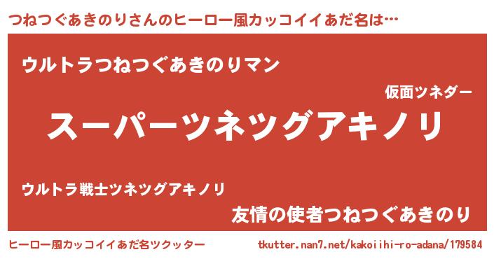 | 男性向けラノベタイトル風あだ名 | 『ツネツグアキノリアートオンライン』 |