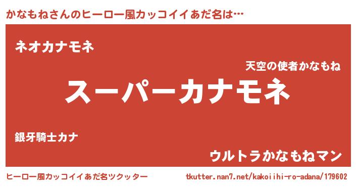 | 男性向けラノベタイトル風あだ名 | 『カナモネスレイヤー』 |