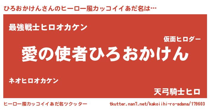 | 男性向けラノベタイトル風あだ名 | 『ノーゲーム・ノーヒロオカケン』 |