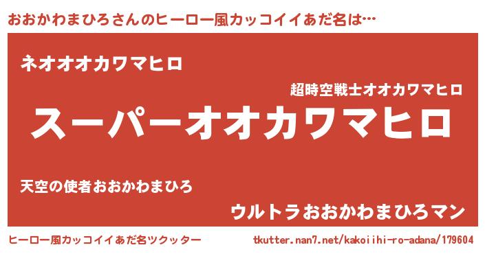 | 男性向けラノベタイトル風あだ名 | 『おおかわまひろの憂鬱』 |