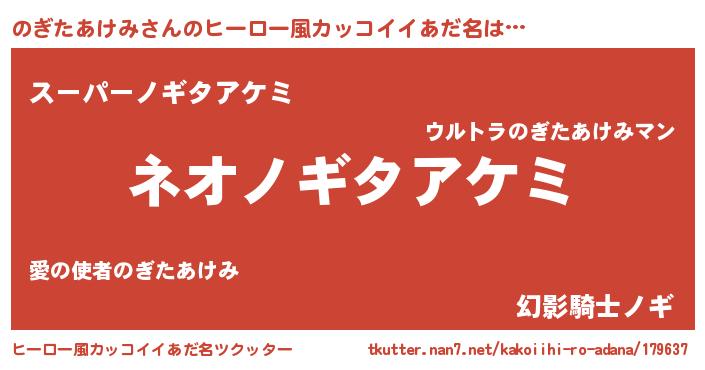 | ヘコむあだ名 | 『のぎたあけみ(苦笑)』『のぎにー』 |