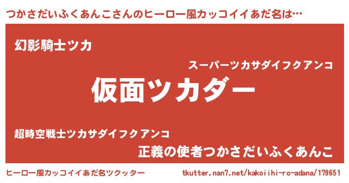 | 女子向けラノベタイトル風あだ名 | 『つかさだいふくあんこが死なない童話 林檎のつかさだいふくあんこの診療簿』 |