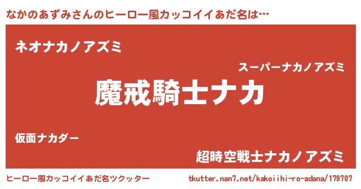 | ポケモン風あだ名 | 『ナカキング』『ヒナカノアズミ』 |