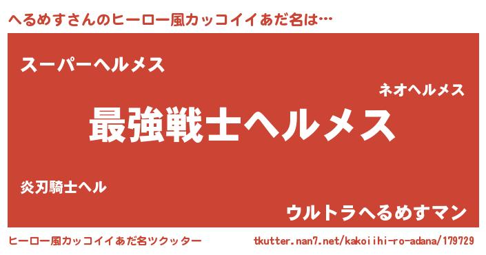 | 女子向けラノベタイトル風あだ名 | 『闇のへるめす』『へるめすの雑貨屋さん』 |